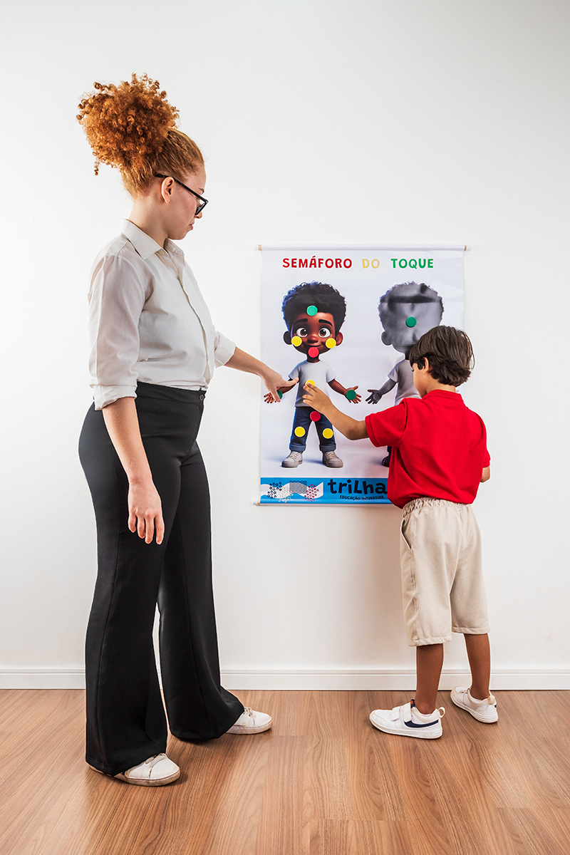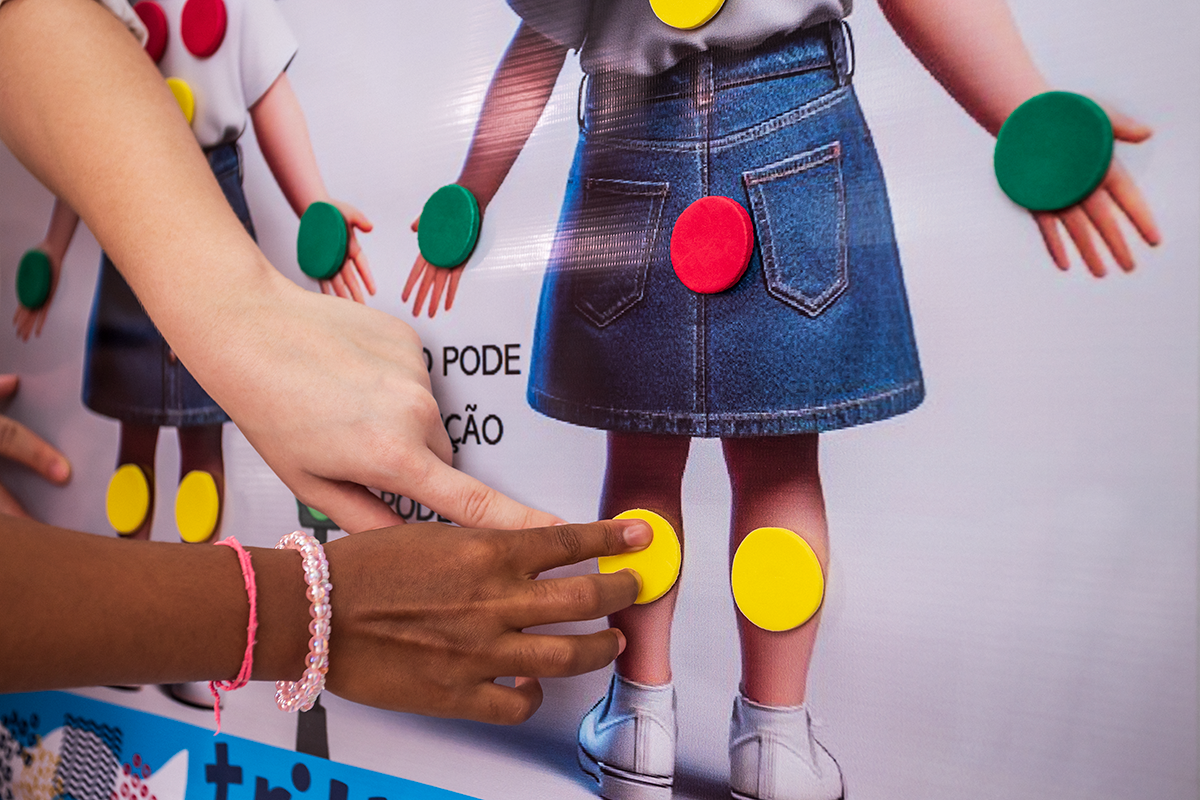 Uma ferramenta educativa que utiliza o conceito de semáforo para ensinar sobre os limites pessoais e a importância de identificar situações de abuso. A ferramenta conta com 2 unidades de banner, uma representando uma menina e outra
